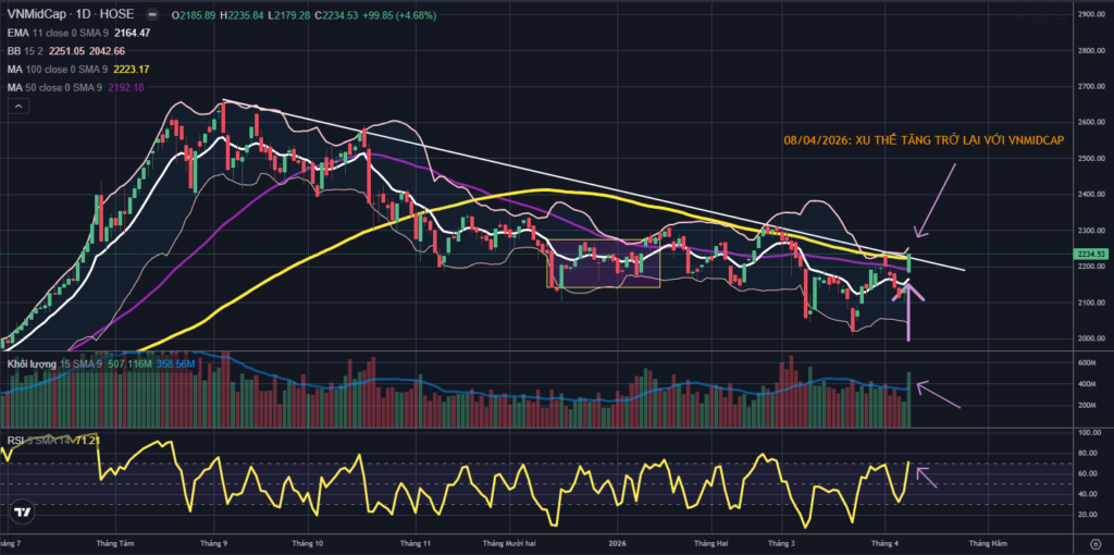 Nhật ký đầu tư – 08/04/2026: Phiên bứt phá xác nhận xu hướng tăng trở lại của VNMIDCAP